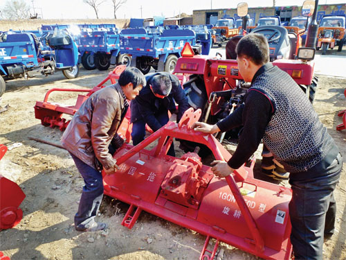 七九河開,八九燕來。春耕生產(chǎn)開始之際,農(nóng)民們開始為春耕做準備。圖為原平市大陽村村民王師傅正在購買農(nóng)機。(李玉生 攝)
