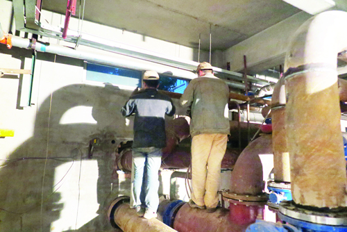 圖為供熱站工人加班加點進行站內改造
