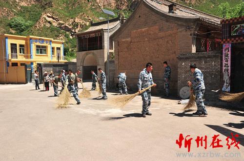 圖為部隊官兵為王家會村打掃街道 (責(zé)任編輯:李冬梅) |
