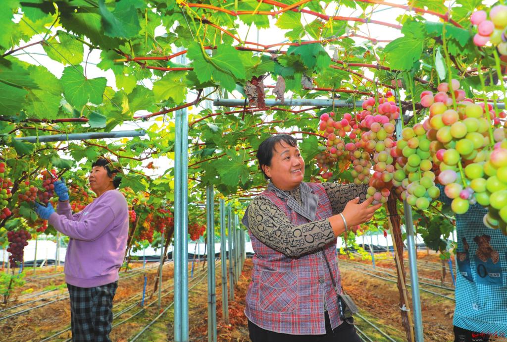 近日,原平市原心紅種養(yǎng)專業(yè)合作社于2017年引進(jìn)的“妮娜皇后”“陽光玫瑰”新品種葡萄開始掛果,并喜獲豐收。眼下正是采摘佳期,產(chǎn)品一經(jīng)上市便贏得八方顧客青睞,線上線下訂單供不應(yīng)求。目前,這些葡萄已銷往北京、馬來西亞等國內(nèi)外多家大型市場。(褚 震攝)