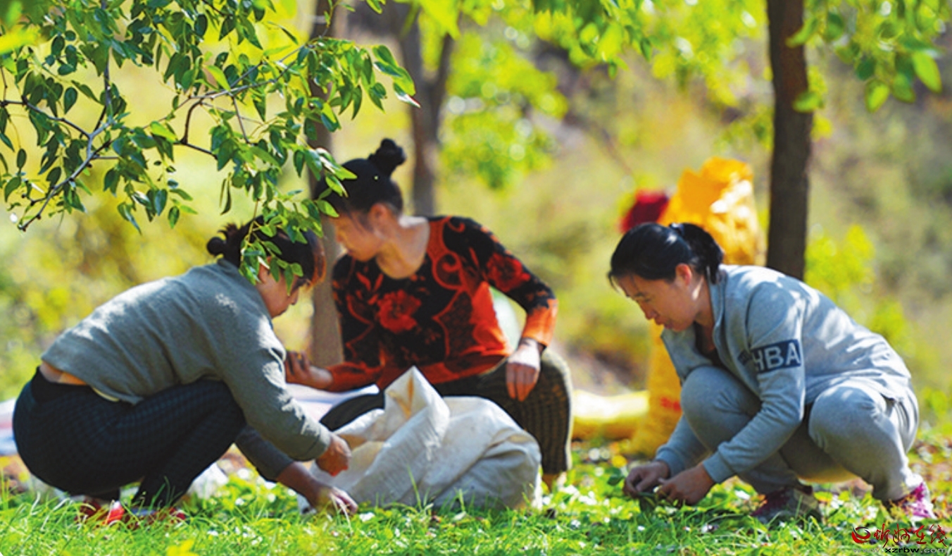 村民在撿棗、篩選、裝袋。