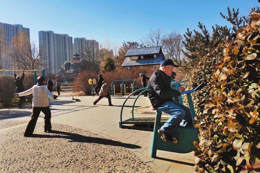 12月26日,市民在忻州城區(qū)人民公園鍛煉身體。入冬以來,寒冷的天氣絲毫沒有影響市民戶外健身的熱情,大家以不同的方式鍛煉,盡情享受運(yùn)動(dòng)帶來的快樂。 記者 宮清華攝
