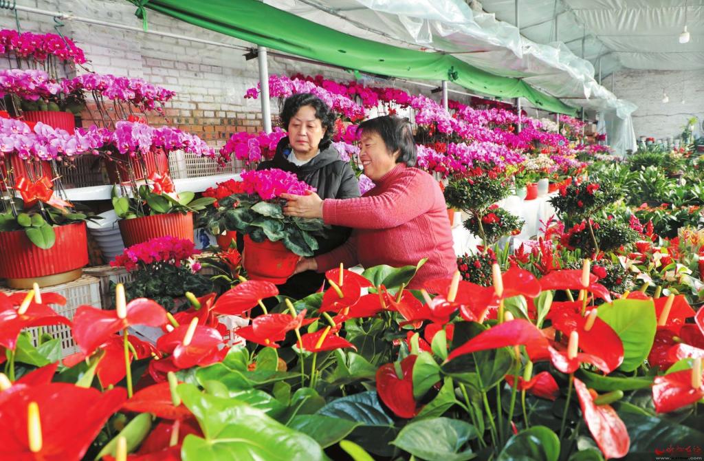 春節(jié)臨近,年宵花迎來了一年一度的銷售旺季。1月19日,原平市南城街道柳巷村福地花圃溫室大棚內(nèi)溫暖如春。記者看到,五顏六色、造型各異的蝴蝶蘭、杜鵑花等年宵花奪人眼球,吸引更多市民前來選購。(褚 震攝)