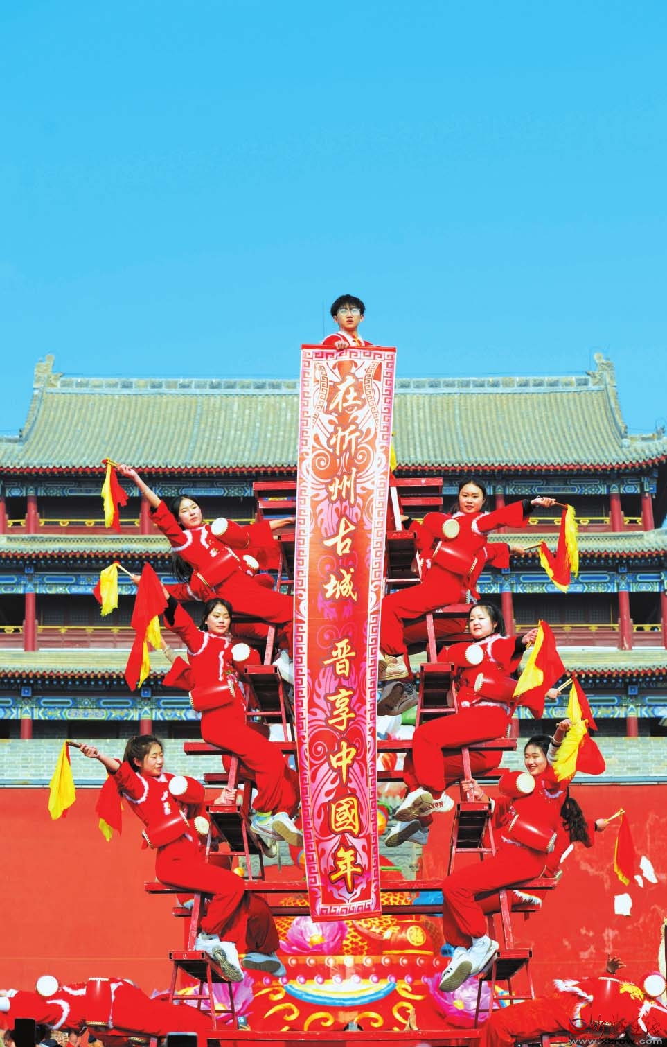 忻州古城“高臺(tái)花鼓”表演。 張宇飛 攝
