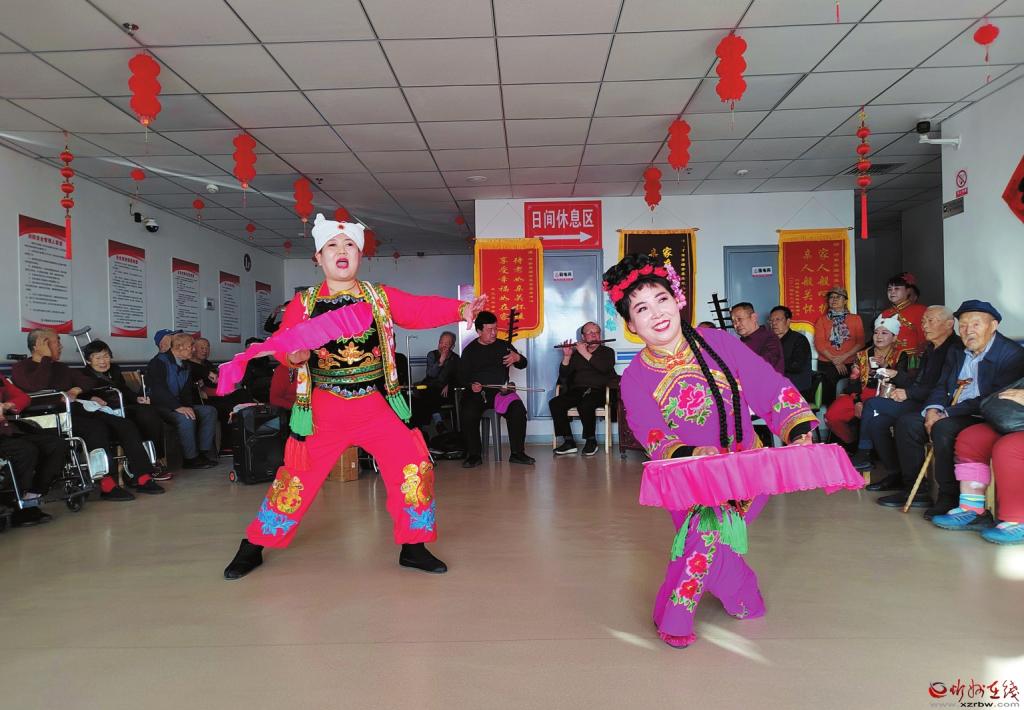 演出內(nèi)容包括社火、威風鑼鼓、河曲民歌、二人臺等傳統(tǒng)節(jié)目。演出現(xiàn)場,隨著一聲聲渾厚有力的鼓點敲響,老人們情不自禁地跟著哼唱起來,滿足了他們的精神文化需求,讓他們深切感受到來自各方面的溫暖與關(guān)愛。(本報通訊員攝)