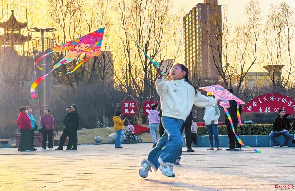 春分時(shí)節(jié),在忻州城區(qū)人民公園,家長與孩子共同放飛風(fēng)箏,各色風(fēng)箏在天空中爭奇斗艷,洋溢著春日的歡樂氣息。 (