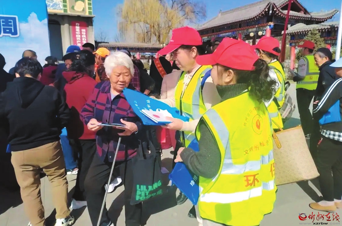 圖為工作人員向過往群眾講解節(jié)水方法。