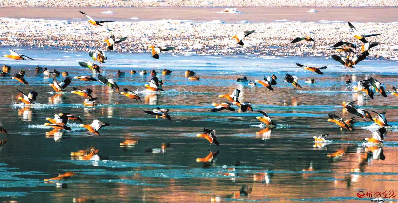 天鵝和野鴨棲息在黃河沿線(xiàn) 王春梅 攝