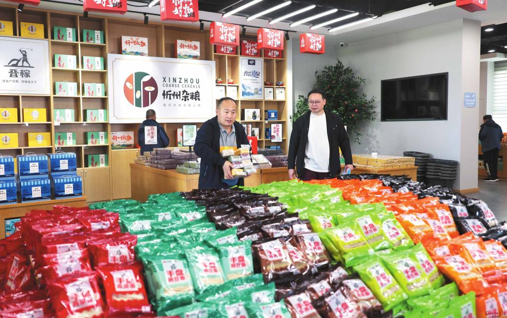 近日,來(lái)自山東的游客專程來(lái)到忻州雜糧城挑選購(gòu)買心儀的雜糧。忻州雜糧憑借得天獨(dú)厚的自然條件,以一粱、二薯、三麥、四米、五豆為主,涵蓋20余個(gè)作物種類,年總產(chǎn)量達(dá)70萬(wàn)噸以上,規(guī)模穩(wěn)居全省之首。 (記者 宮清華攝)