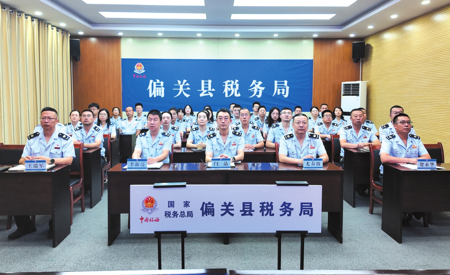 偏關(guān)縣稅務(wù)局黨員干部觀看紀(jì)念大會(huì)。賀琦攝
