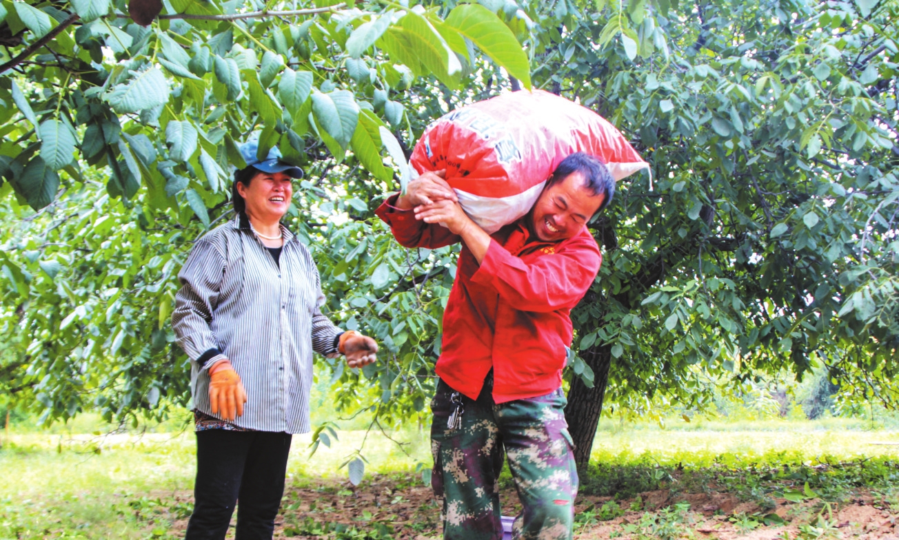 原平市云水鎮(zhèn)北崗村村民采收核桃。吉建平攝
