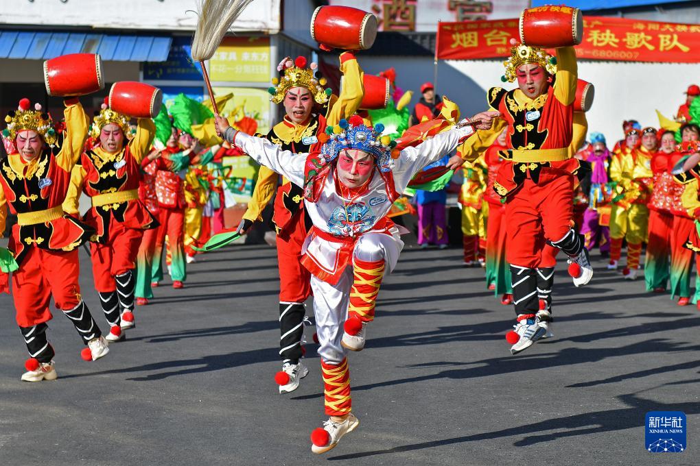 12月29日,民間藝人在山東省煙臺(tái)市芝罘區(qū)東方文化市場(chǎng)進(jìn)行民俗表演。(新華社發(fā) 孫文潭 攝)