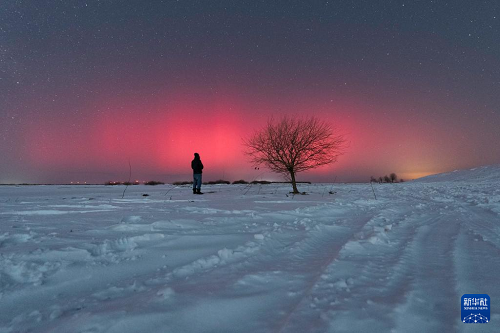 2025年1月1日在黑龍江省佳木斯富錦市松花江沿岸拍攝的極光。(新華社發(fā) 曲玉寶 攝)