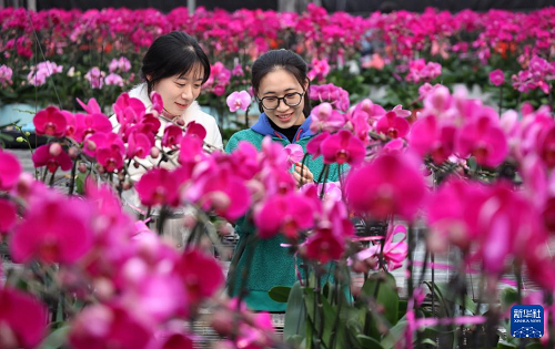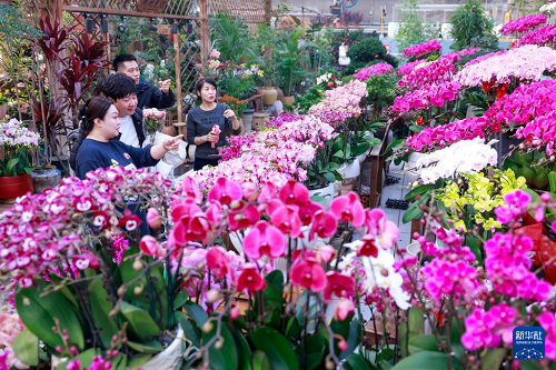 1月22日,人們?cè)诤颖笔√粕绞胸S南區(qū)在一花卉市場(chǎng)選購(gòu)鮮花。(新華社發(fā) 李秀清 攝)