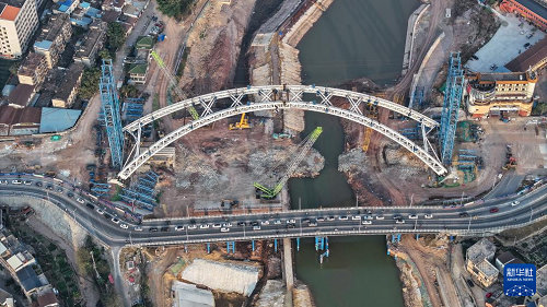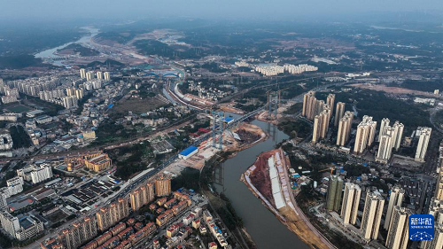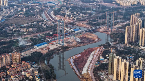 2月4日拍攝的建設(shè)中的欽州一橋(無(wú)人機(jī)照片)。(新華社記者 張愛林 攝)