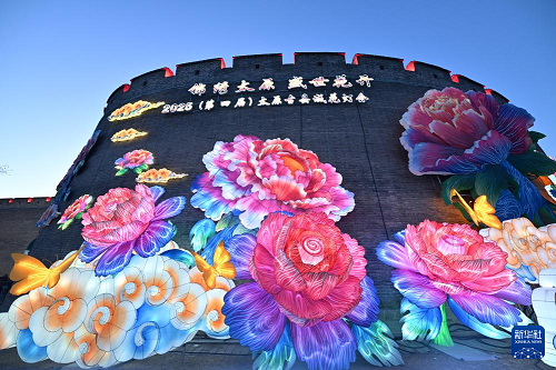 2月5日,游人在太原市晉源區(qū)太原古縣城賞花燈。(新華社記者 詹彥 攝)