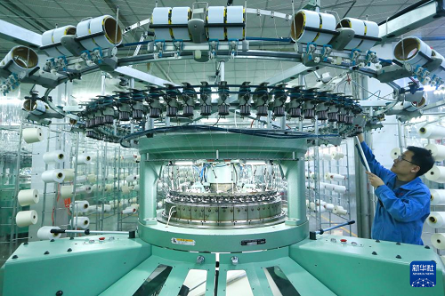 2月7日,山東省青島市即墨區(qū)頤和針織有限公司工人在生產(chǎn)出口到海外市場的服裝面料產(chǎn)品。(新華社發(fā) 梁孝鵬 攝)