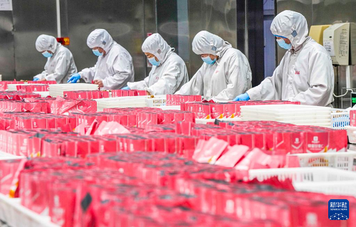 2月7日,工人在河北省遵化市蘇家洼鎮(zhèn)一家板栗加工企業(yè)灌裝車間工作。(新華社發(fā) 劉滿倉 攝)