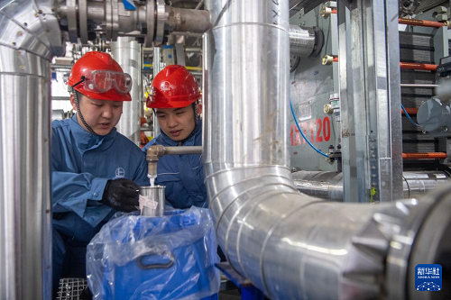 2月11日,在重慶市長(zhǎng)壽區(qū)的中國(guó)石化川維化工VAE(醋酸乙烯-乙烯共聚乳液)項(xiàng)目,工作人員在進(jìn)行產(chǎn)品采樣。(新華社記者 唐奕 攝)