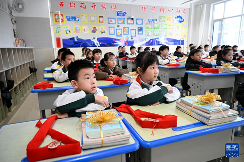 2月16日,寧夏銀川市金鳳區(qū)第一小學(xué)學(xué)生在教室里準(zhǔn)備領(lǐng)取新課本。(新華社發(fā) 袁宏彥 攝)