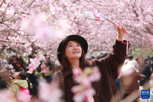 3月9日,游客在南京中山植物園拍攝櫻花。(新華社發(fā) 劉建華 攝)