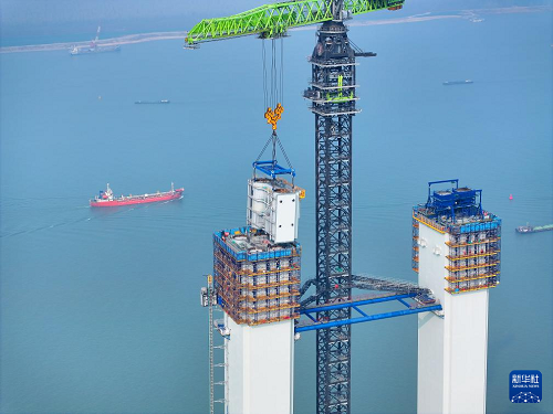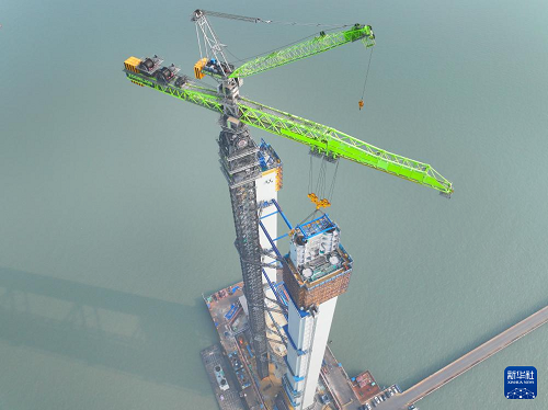 3月11日,張靖皋長(zhǎng)江大橋南航道橋南主塔進(jìn)行第19個(gè)節(jié)段安裝,主塔升至208米的新高度。張靖皋長(zhǎng)江大橋連接江蘇省蘇州、泰州和南通,跨江段全長(zhǎng)7859米,設(shè)置南、北兩座航道橋及南中北三段引橋。