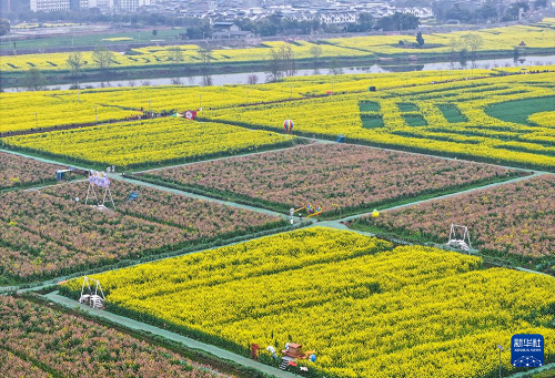 這是3月12日拍攝的重慶潼南崇龕花海景區(qū)景象(無(wú)人機(jī)照片)。(新華社記者 王全超 攝)