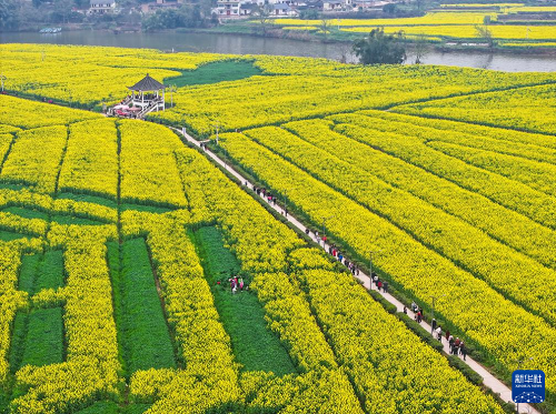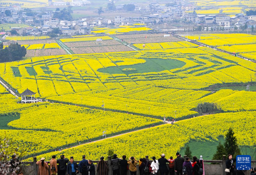 早春時(shí)節(jié),重慶市潼南區(qū)的32.2萬(wàn)畝油菜花競(jìng)相綻放,成為春日里一道靚麗的風(fēng)景線(xiàn)。