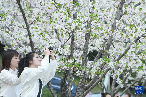 3月26日,人們?cè)谂臄z櫻花。(新華社記者 翁忻旸 攝)