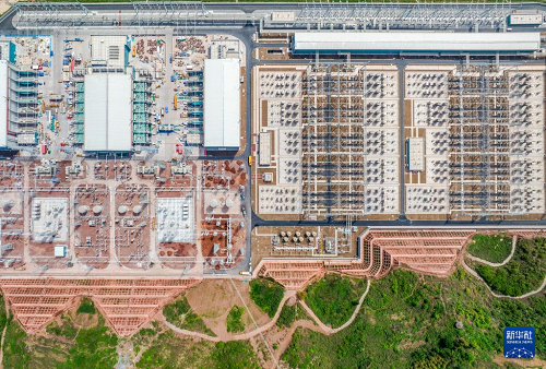 這是4月16日拍攝的建設(shè)中的“疆電入渝”特高壓工程渝北換流站(無人機照片)。(新華社發(fā) 鄭賢列 攝)
