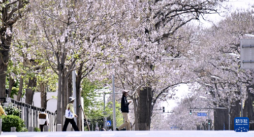 4月17日拍攝的泡桐花盛開的宏達路。(新華社記者 李欣 攝)
