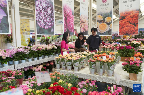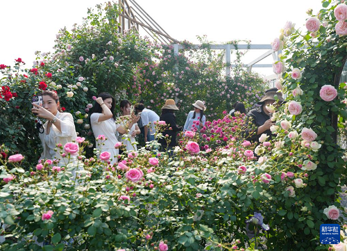 4月28日,人們在花園大會月季展區(qū)參觀。(新華社記者 翁忻旸 攝)