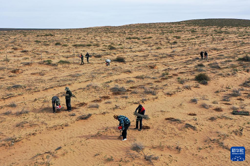 連日來(lái),在內(nèi)蒙古鄂爾多斯市杭錦旗境內(nèi)的庫(kù)布其沙漠里,治沙工人忙著栽種沙柳、檸條等沙生植物,開(kāi)展庫(kù)布其沙漠生態(tài)治理。今年以來(lái),杭錦旗多舉措打好“三北”工程攻堅(jiān)戰(zhàn),實(shí)施建設(shè)庫(kù)布其沙漠鎖邊林草帶、風(fēng)沙路徑阻隔帶等5個(gè)治沙項(xiàng)目,計(jì)劃年內(nèi)完成治沙任務(wù)100萬(wàn)畝以上。