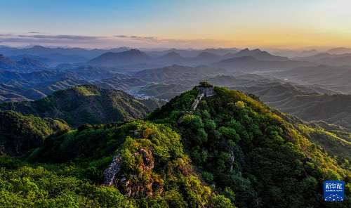 5月6日在河北省遵化市小廠鄉(xiāng)拍攝的洪山口古長(zhǎng)城晨景(無(wú)人機(jī)照片)。(新華社發(fā) 劉滿倉(cāng) 攝)