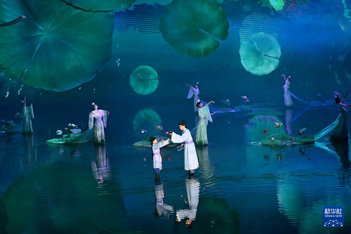 5月8日,大型文旅舞臺(tái)劇《月映武夷》演員在演出。(新華社記者 姜克紅 攝)