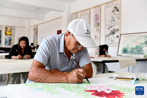 6月2日,在巨野縣田橋鎮(zhèn)東祝村書畫院,農(nóng)民畫師在創(chuàng)作工筆畫。(新華社記者 郭緒雷 攝)