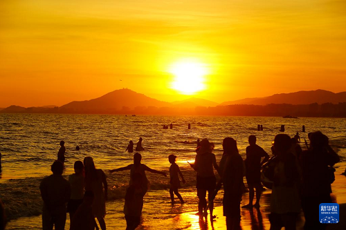 6月2日,游客在海南省三亞市三亞灣戲水游玩。(新華社發(fā) 陳文武 攝)