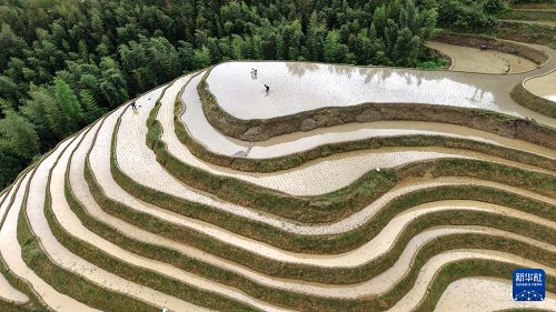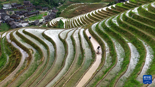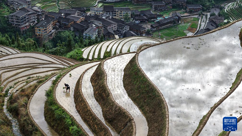 連日來,廣西桂林市龍勝各族自治縣龍脊梯田轄區(qū)內(nèi)的各村寨進(jìn)入夏種農(nóng)忙時(shí)節(jié),村民忙著耙田、插秧,梯田上一派忙碌景象。