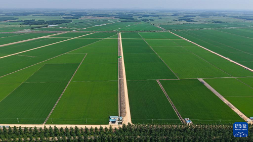 這是6月24日在黑龍江北大荒農(nóng)業(yè)股份有限公司八五六分公司第六管理區(qū)高標準農(nóng)田拍攝的水稻秧苗(無人機照片)。(新華社發(fā) 黃永興 攝)