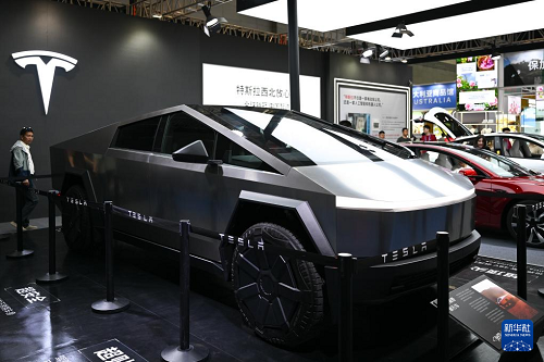 6月26日在2025(中國)亞歐商品貿(mào)易博覽會上拍攝的特斯拉Cybertruck。(新華社記者 辛悅衛(wèi) 攝)