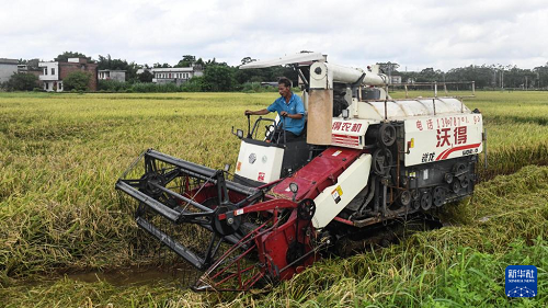 近日,廣西欽州市的早稻進(jìn)入集中收割期。