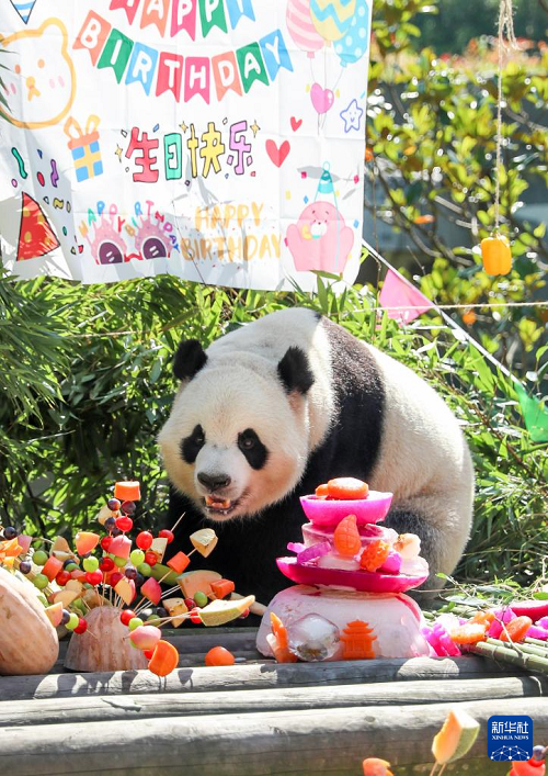 7月27日,大熊貓“林溪”“一家”在四川省廣安市華鎣山熊貓苑,分別迎來4歲和6歲生日,飼養(yǎng)員為它倆舉行了一場別開生面的生日會。