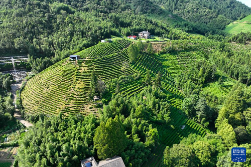 這是8月5日拍攝的浙江省杭州市余杭區(qū)徑山村茶山(無(wú)人機(jī)照片)。(新華社記者 毛竹 攝)