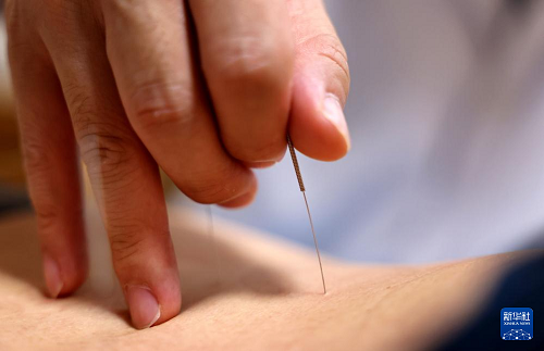 8月18日,江蘇省蘇州市姑蘇區(qū)金閶街道彩香二村社區(qū)衛(wèi)生服務站醫(yī)生為居民進行針灸診療。(新華社發(fā) 杭興微 攝)