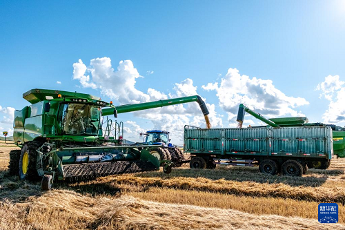 近日,位于內(nèi)蒙古呼倫貝爾市額爾古納市的呼倫貝爾農(nóng)墾拉布大林農(nóng)場19.22萬畝小麥迎來豐收季,當(dāng)?shù)剞r(nóng)民搶抓農(nóng)時(shí),以大規(guī)模機(jī)械化的方式開展收割、晾曬作業(yè)。