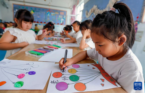 9月9日,河北省遵化市遵化鎮(zhèn)南關(guān)幼兒園的小朋友在繪制美術(shù)作品感念師恩。(新華社發(fā) 劉滿倉(cāng) 攝)