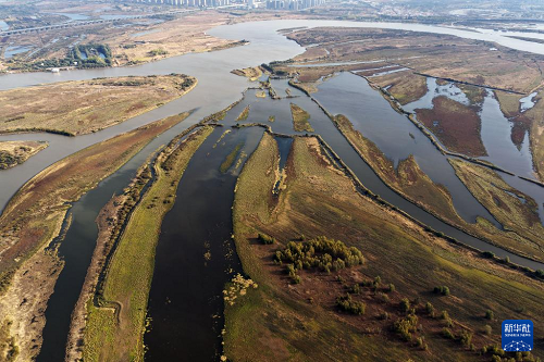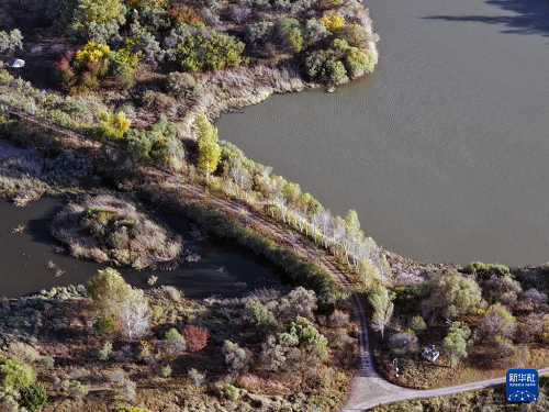 這是10月7日拍攝的哈爾濱金河灣濕地公園景色(無(wú)人機(jī)照片)。(新華社記者 王松 攝)