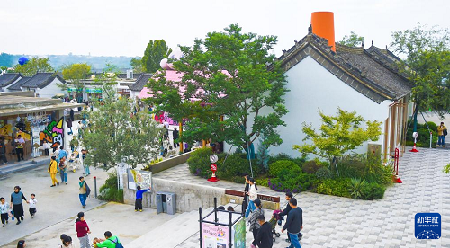 10月7日,游客在河南省洛陽市孟津區(qū)朝陽鎮(zhèn)衛(wèi)坡村的魏坡新序項(xiàng)目休閑游玩。(新華社發(fā) 黃政偉 攝)