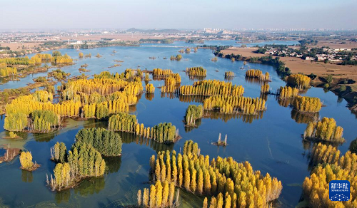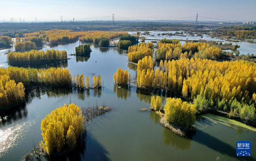 初冬時(shí)節(jié),在河北省邢臺(tái)市隆堯縣亦城村泜河沿岸,樹葉金黃,與水面、河岸相映襯,勾勒出一幅美麗和諧的自然畫卷。