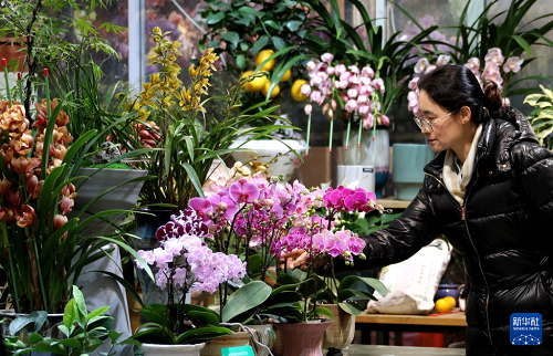 12月23日,市民在江蘇省蘇州市一家花卉市場選購花卉。(新華社發(fā) 杭興微 攝)
